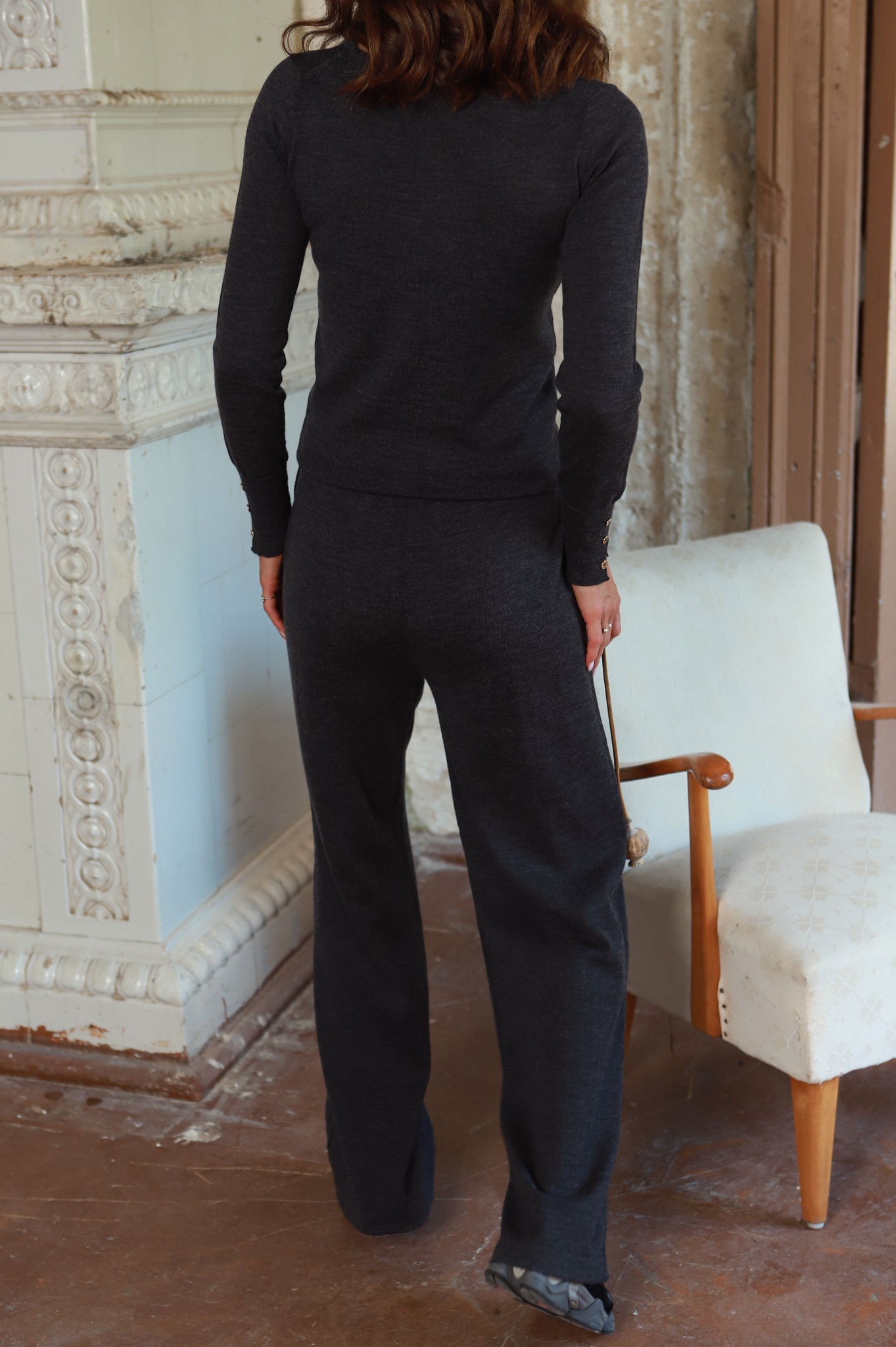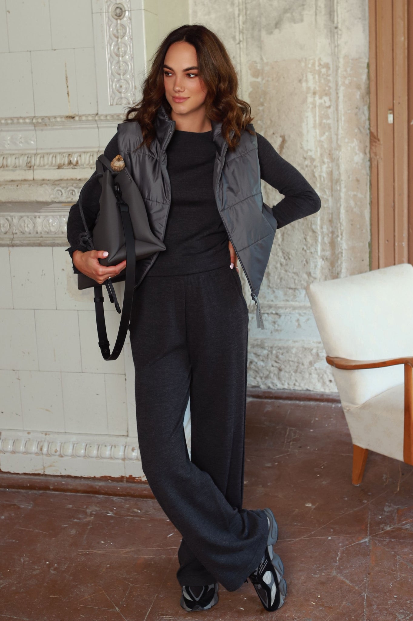 Šios kolekcijos „Skalūno“ kelnes mes papuošėme ne tik išskirtine kokybe ir nuostabiu jausmu jas dėvint, bet ir mūsų kūrybiniuose horizontuose dar nebūta „skalūno akmens“ spalva, kurią „žemiškai“ galime pavadint šlapio asfalto arba grafito vardu. Kelnės turi pačias patogiausias kišenes, dailų „plačiaklešnį“ siluetą ir itin patogų, bei centimetrui „šen ar ten“ nepretenzingą liemenį.