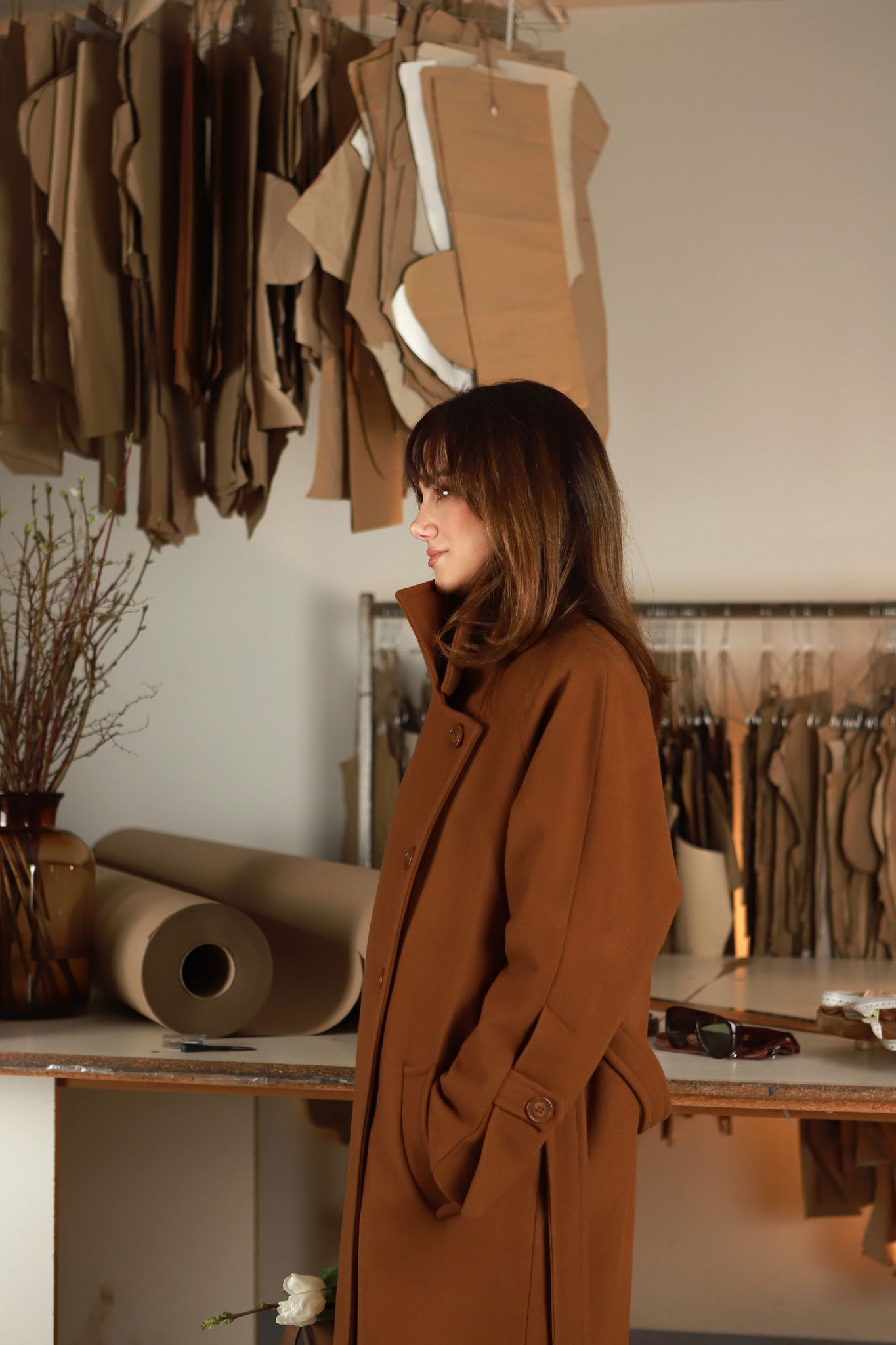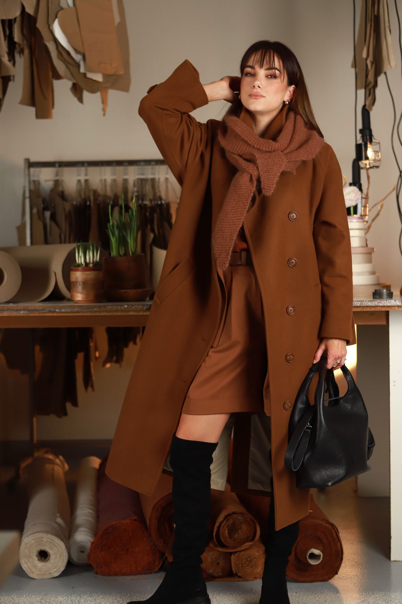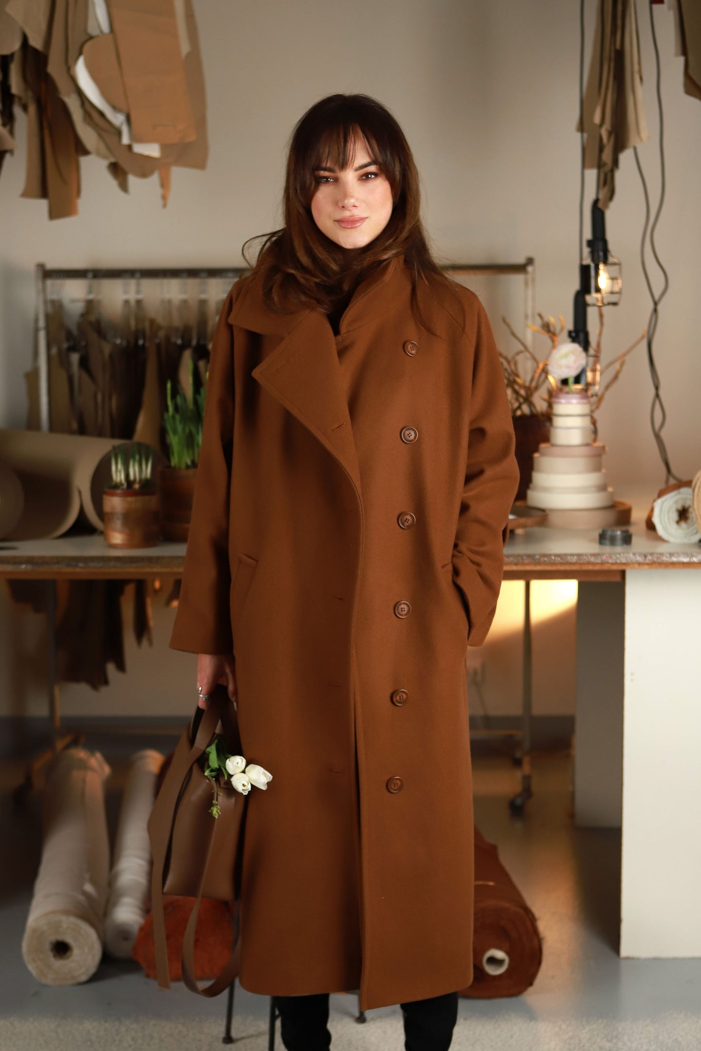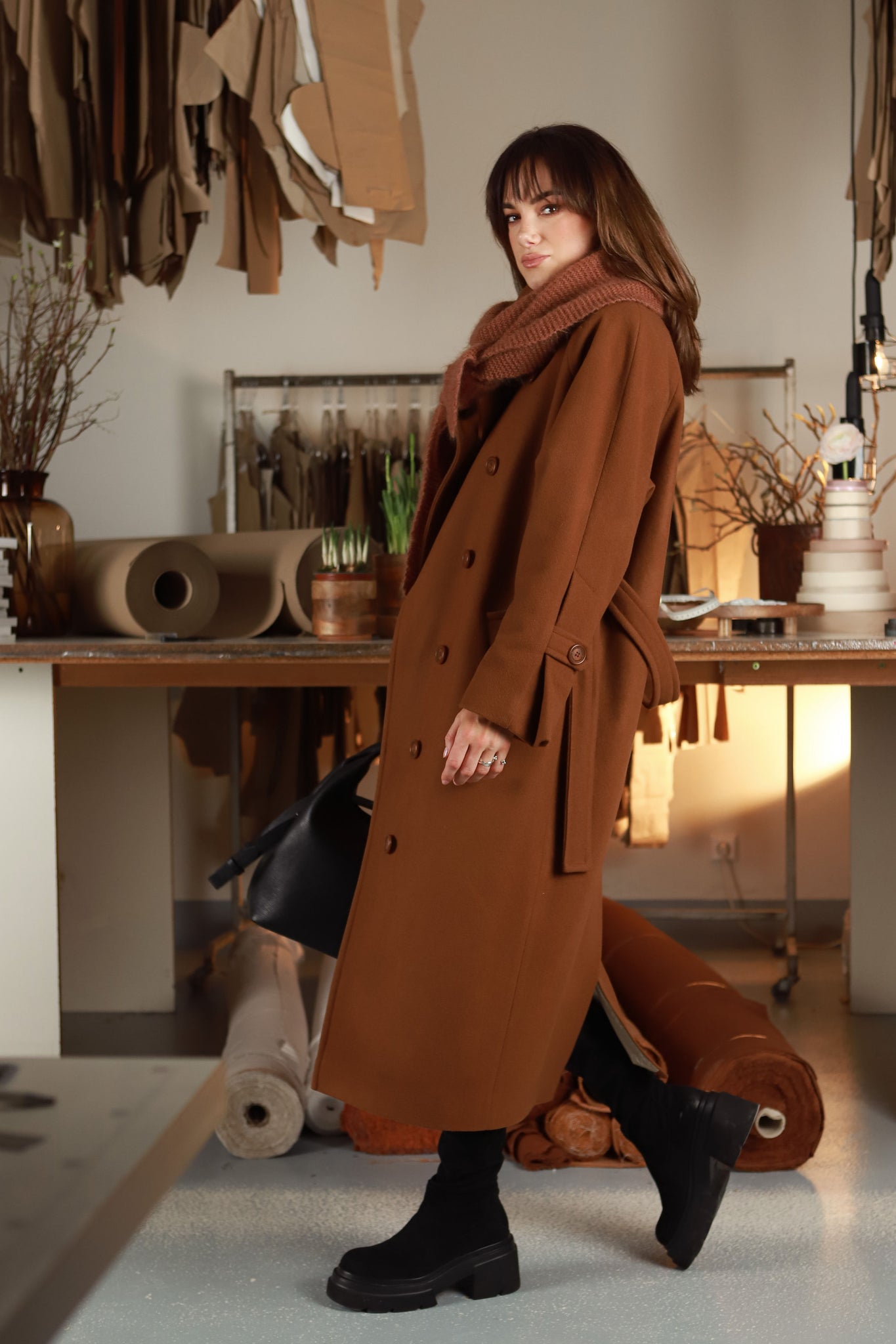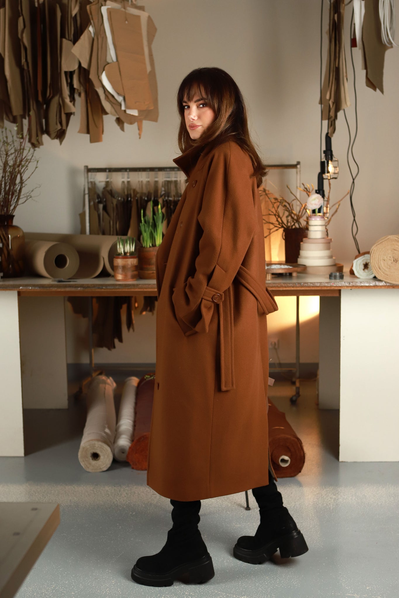 APRAŠYMAS: Kokoniško silueto cinamono spalvos paltas - tikras Pavasario|26 "vinis", jame subtili prabanga „draugauja“ su apgalvotu ir išieškotomis detalėmis paįvairintu dizainu. „Stokholmas" pasiūtas iš itin kokybiškos vilnos, kuri puikiai laiko formą, gražiai krenta ir leidžia paltui išlikti estetiškam net po ilgo dėvėjimo. Taip pat liežuvis nesilaiko už dantų nepasakius, kad palto audinys yra austas ir dažytas pagal specialų mūsų užsakymą, tad jis ne tik gražus, bet ir unikalus. Šis paltas kurtas taip, kad lydėtų Jus per kelis sezonus. Jis idealiai tinka ankstyvam pavasariui, o vėliau lengvai įsilieja į rudens bei žiemos derinius. Pasirūpinome, kad jis per visus sezonus galėtų žygiuoti ne tik dėl savo spalvos, bet ir dėl standaus, šilto ir nuo vėjo apsaugančio audinio. Šoninėse siūlėse integruotos sagos prilaiko diržą ir leidžia keisti siluetą - atsegus vieną iš jų, paltą galima susijuosti ir įliemenuoti. Tai subtili, bet labai funkcionali detalė, skirta mėgstančioms kurti skirtingus įvaizdžius. Išskirtiniu akcentu tampa originaliu užmanymu papuošti rankogaliai. Paltukas pasižymi klasikinio kirpimo apykakle, kurią galima "pastatyti" ir taip išgauti maksimaliai šiltą viršutinio drabužio variantą stipriai vėjuotoms dienoms. Pridėjus faktą, kad paltukas puikiai tinka prie visų Pavasario|26 ,,ryžikų”, imu galvoti, kad tikroms V&V mylėtojoms yra "griekas" jo neturėt savo deriniuose. ,,Nušaukit mane, jeigu bandysiu jo nepirkt”,- parašė viena V&V mylėtoja, pamačiusi intrigėlę su paltuku, nors ten matėsi tik pirmieji jo štrichai.